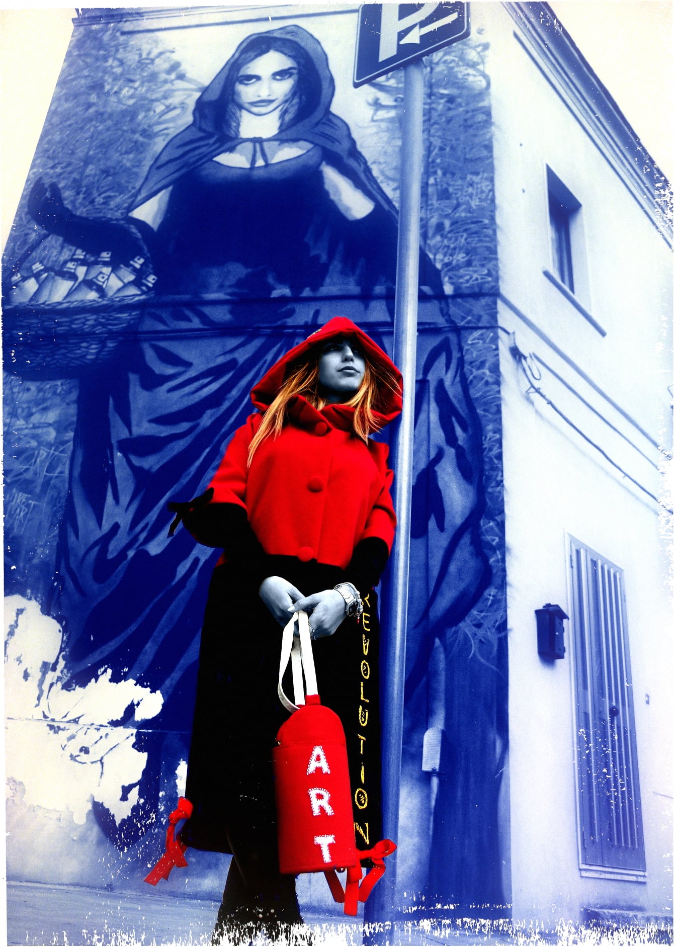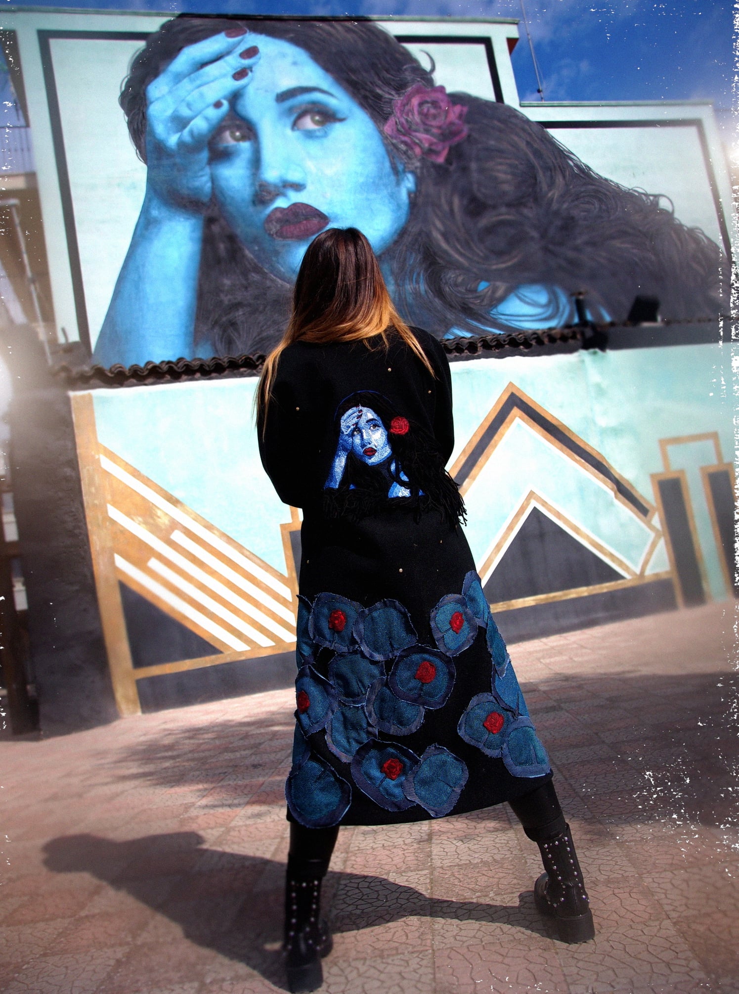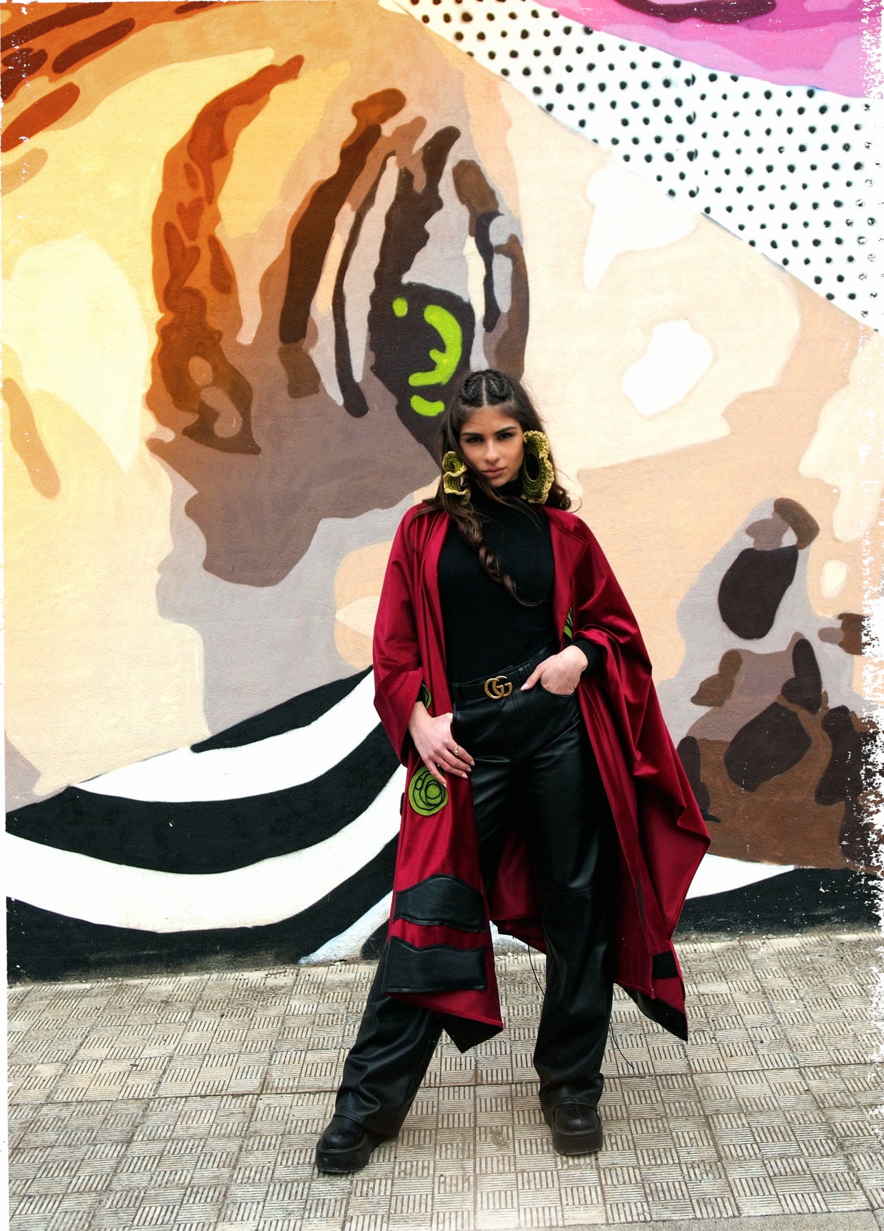StatoDonna, 22 febbraio 2022. I murales di Stornara ispirano la moda, gli orecchini, le borse, i cappotti, il poncho. Creati e indossati dagli studenti dell’Accademia di Belle Arti di Foggia, si mostrano nello shooting fotografico accanto all’opera del muralista scelto. Il tema d’esame- sessione di febbraio, “decorazione per moda e costume” nel triennio- aveva anche questo come oggetto, idee e tecniche che dalla street art passano su abiti e accessori.