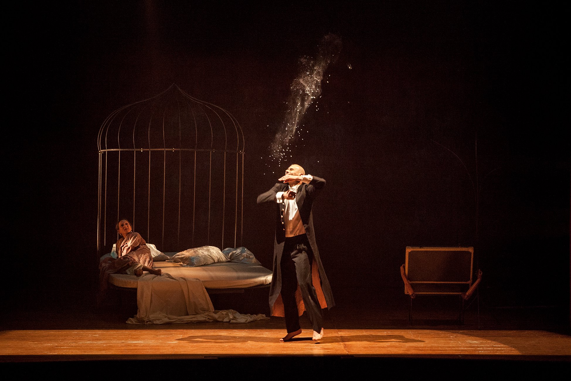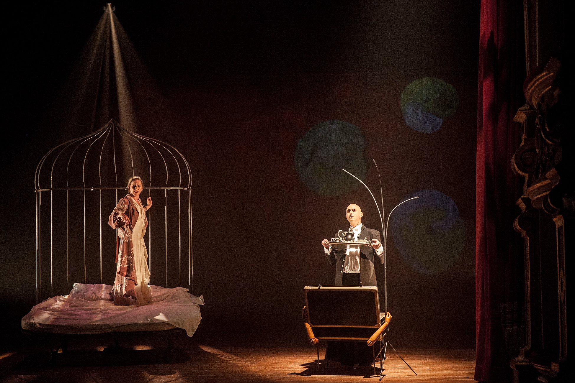 Nell’ombra si intravede una figura maschile che si anima e inizia a raccontarci che Madame non sta molto bene e che è tempo di preparare le valige.