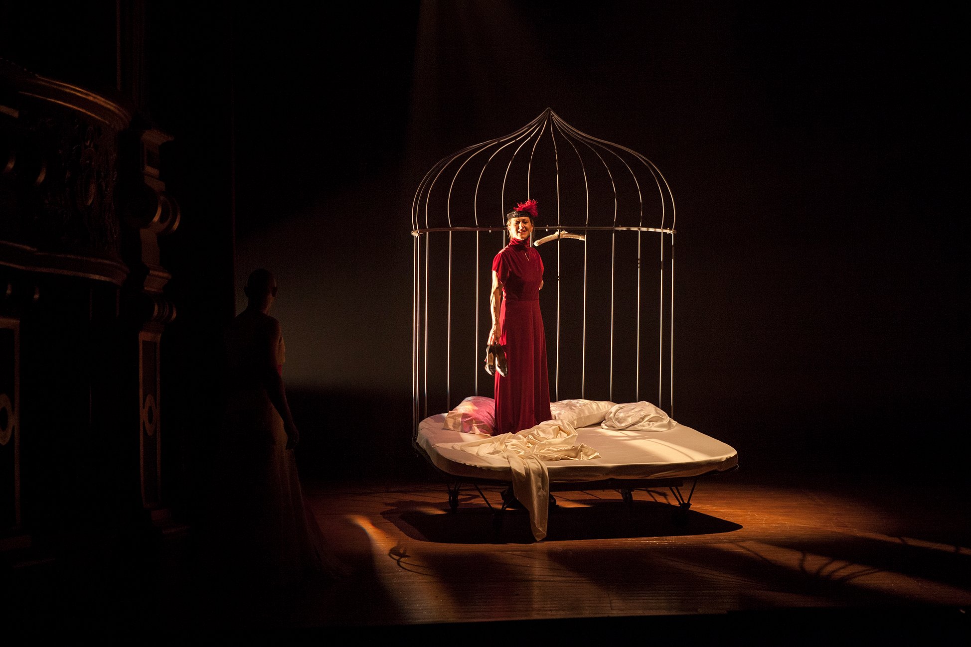 Un grande e soffice letto, lenzuola di seta bianca, la testiera tondeggiante a formare una gabbia dorata. Una donna sta dormendo, si agita nel sonno, forse sta sognando o forse sta avendo un incubo.