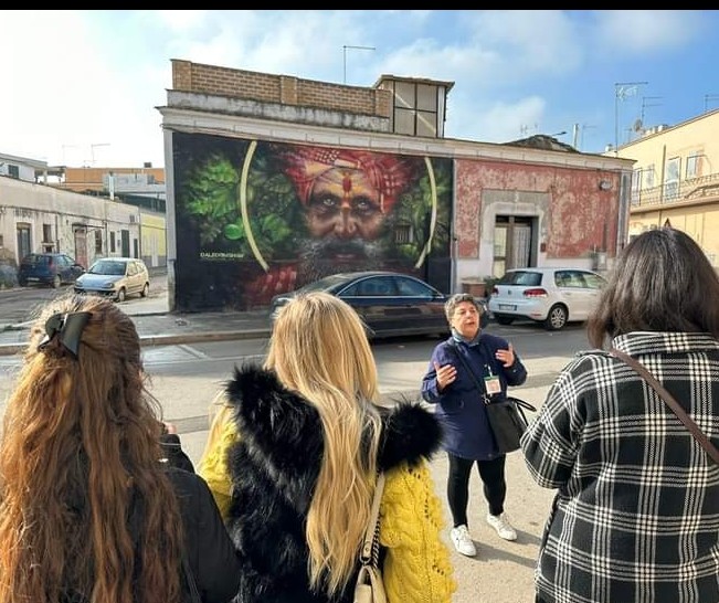 “Direi che fondamentalmente sono di supporto a chi di arte e di cultura ne sa più di me ed è più accreditato all’interno dell’associazione Stornara Life. Collaboriamo, infatti, con una docente dell’Accademia delle Belle Arti, Francesca Sabba, ed una docente di Storia dell’Arte del Liceo Scientifico di Cerignola, Enza Rutigliano. Più specificamente, per quello che riguarda il festival, io seguo gli artisti, mi occupo di contattarli, di accoglierli. Trascorro con loro il momento della colazione ad inizio giornata, procuro loro i materiali e i colori di cui necessitano per realizzare i murales. E mi piace molto ascoltarli. In più, quando arrivano i turisti a visitare i murales, io faccio da guida e qualcuno mi ha definita “guida emozionale”, perché mi piace entrare in empatia con le persone”.