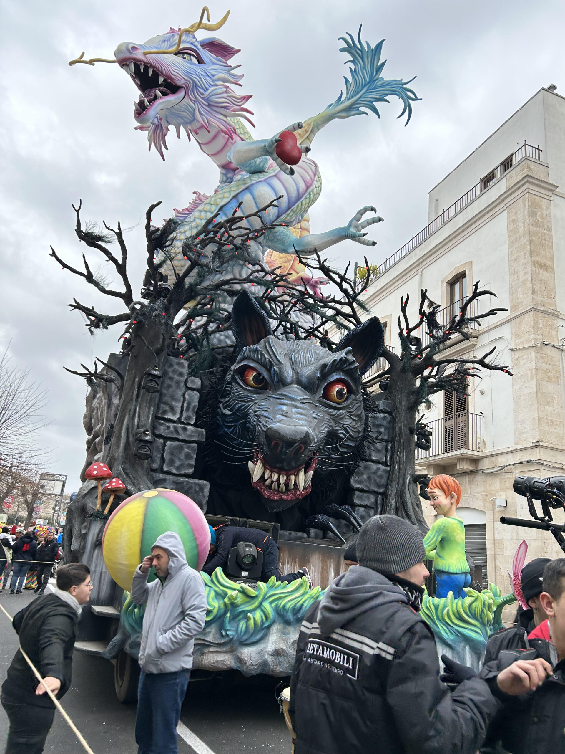 Fra balli e suoni, perimetrando con cura la propria cittadella del Carnevale, Putignano sa mobilitare ogni angolo del paese verso il centro di attrazione, perfezionando anche la maestria dei gruppi che fanno da corteo ai giganti in lento movimento. 7 i carri, da “Attenti al loop”, un lupo e un drago insieme, alla lampada di Aladino, da De-sidera al mondo sottosopra di Odessea.