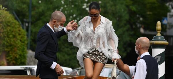 Elodie arriva al Lido di Venezia, look romantico e fan in delirio ad attenderla